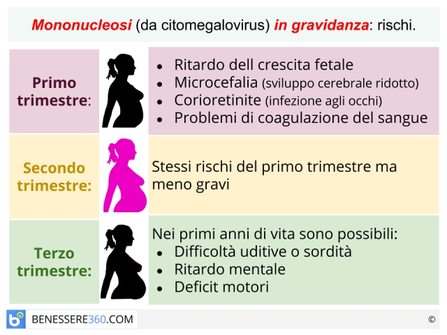 Come già detto, pur provocando gli stessi sintomi, il CMV può dare problemi anche seri, se contratto per la prima volta ad inizio gravidanza.