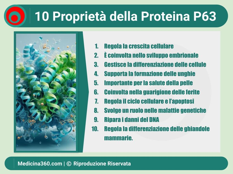 - Cos'è la proteina P63? È una proteina cruciale per lo sviluppo di molti tessuti nell'uomo, tra cui la pelle e le ghiandole. È un membro della famiglia dei geni p53, noti per il loro ruolo nella prevenzione del cancro.