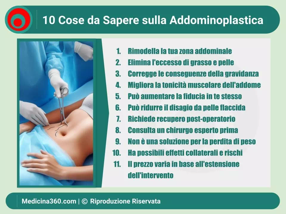 - Quali sono i rischi associati all'addominoplastica? I rischi includono infezioni, sanguinamento, accumulo di liquidi (seroma), trombosi venosa profonda, reazioni all'anestesia, cicatrici e risultati insoddisfacenti. È importante discutere dei rischi con il chirurgo prima dell'intervento.