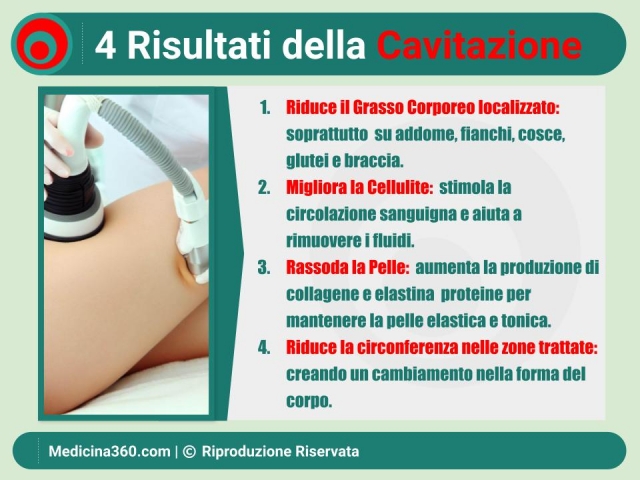 - Quando inizierò a vedere i risultati della cavitazione? I risultati variano da persona a persona, ma in genere si iniziano a notare cambiamenti dopo la prima o la seconda seduta. I risultati migliori si ottengono solitamente dopo una serie completa di trattamenti.