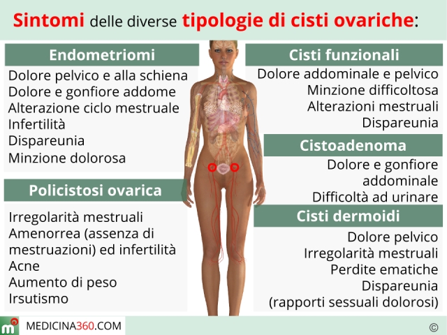 Sintomi delle diverse tipologie di cisti alle ovaie.