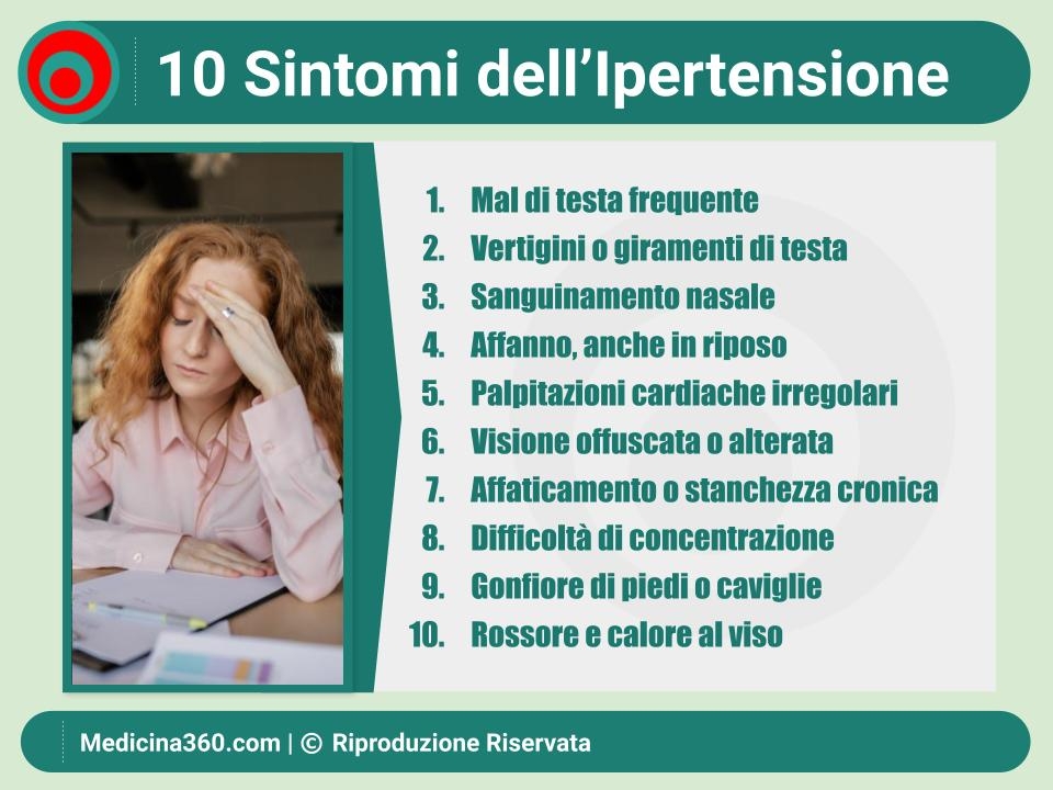 In molti casi, la pressione alta non "si sente", a meno che non raggiunga livelli pericolosamente alti. Alcune persone riferiscono mal di testa, vertigini o palpitazioni come sintomi correlati, ma non è una regola.